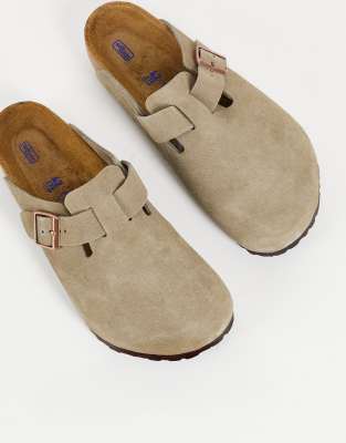 Birkenstocks Boston Clogs In Taupe Suede Asos